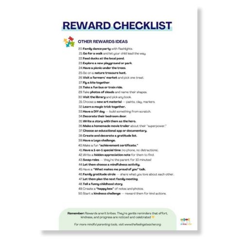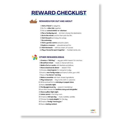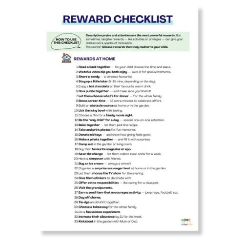What it is: A comprehensive list of non-material rewards and motivators that encourage positive behaviour without relying on sweets, toys or screen time.