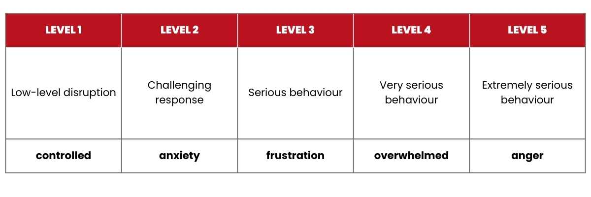 Each level corresponds to an emotion and an unmet need. It's important to connect with the child, making them feel safe and secure before they'll respect and follow the adult supporting them.